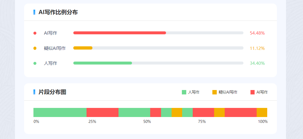 先说说AIGC检测系统的原理吧,其实就是靠抓取AI生成内容的一些典型特征、语言模式等,例如,AI生产的内容往往在词汇上会呈现出一些规律性,句子的结构方面可能也存在一些共性特点,以此来判定论文中是否存在AI生成的内容。