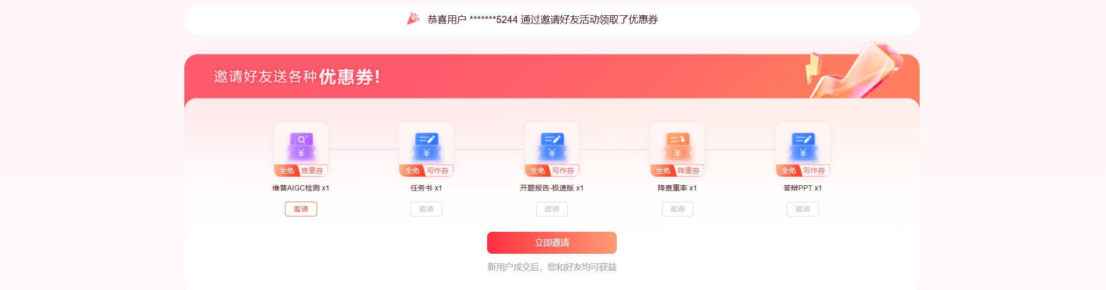 【步骤2】:首页点击“免费领券”,不仅可以薅到答辩PPT,还有维普AIGC、开题报告、任务书、降查重率等多种福利。
