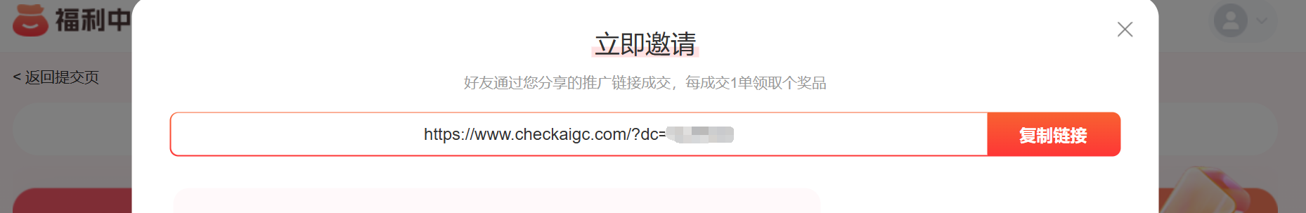 【步骤4】:操作完成后,再点击立即邀请,分享链接或海报给你的小伙伴,只要有人通过你的分享使用,你便可依次获得免费券码。